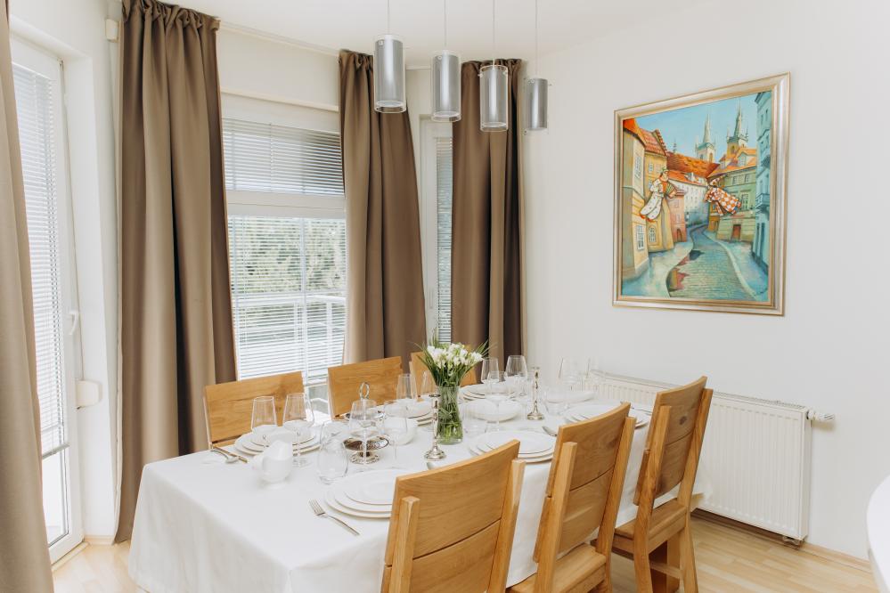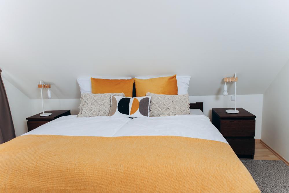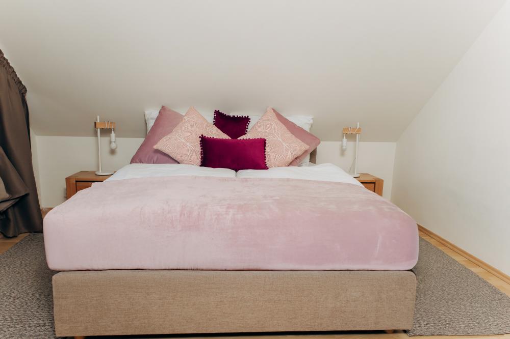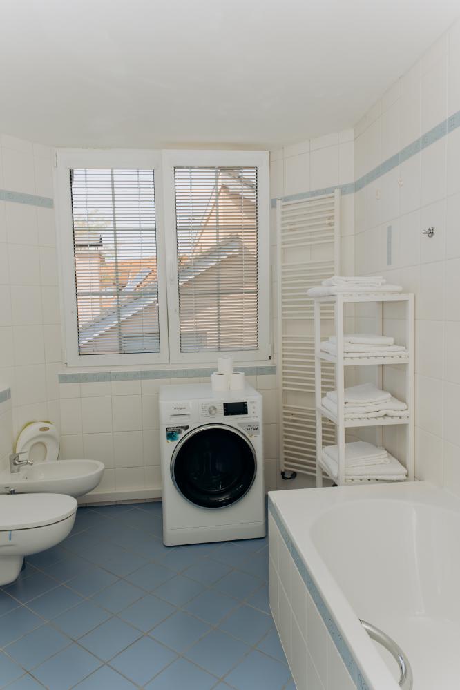 Hlavní předností tohoto apartmánu je krb. Tento prostorný apartmán zahrnuje 1 obývací pokoj, 4 samostatné ložnice a 2 koupelny s vanou a bezplatnými toaletními potřebami. V plně vybavené kuchyni najdou hosté varnou desku, lednici, myčku a kuchyňské náčiní. Apartmán také nabízí gril. V apartmánu je pračka, soukromý vchod, čajový a kávovar a terasa s výhledem na zahradu. V jednotce je 7 postelí.