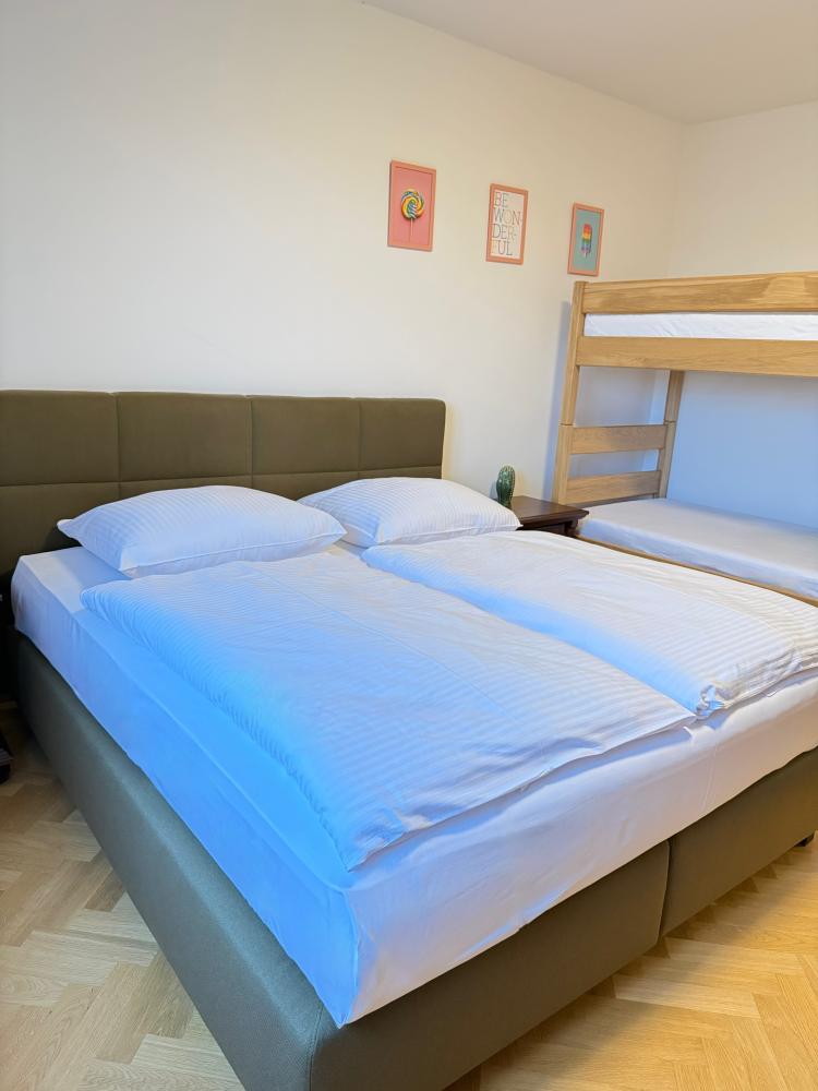 Spacious apartment with two bedrooms and a living room. Enjoy comfort and privacy in this modern apartment with a private entrance, offering a living room, two separate bedrooms, and a bathroom with a shower – ideal for families, colleagues, or groups of friends. Guests can use a fully equipped kitchen with a hob, refrigerator, dishwasher, and the necessary kitchen equipment